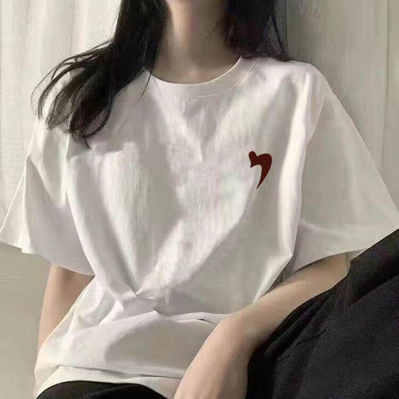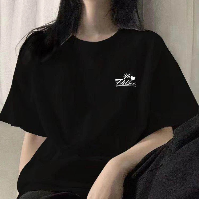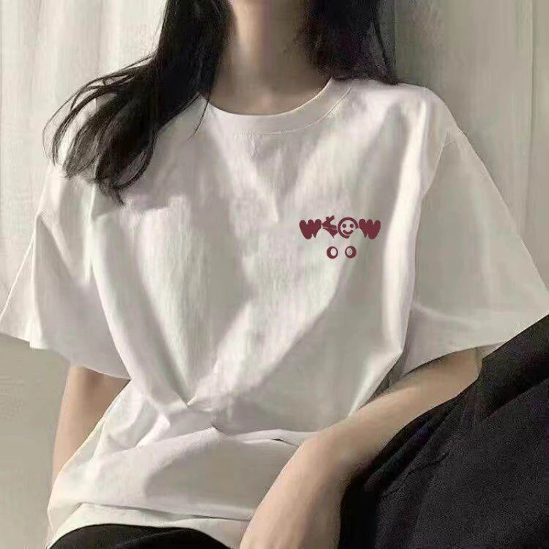 New Cotton Black Foreign Loose Print Short-sleeved T-shirt Women's Summer Korean Version of Pure Desire Top