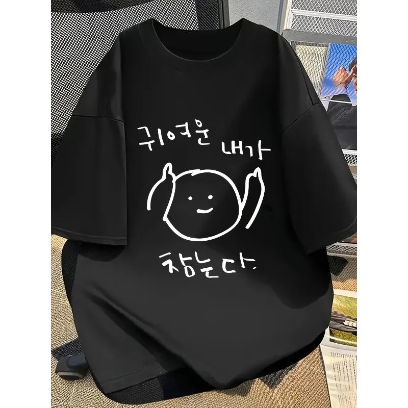 Women's Sexy Summer Women's Short Sleeved Korean Hand-painted Simple Characters "귀여운내가잡는다" Creative T-shirt Korean Cute Style